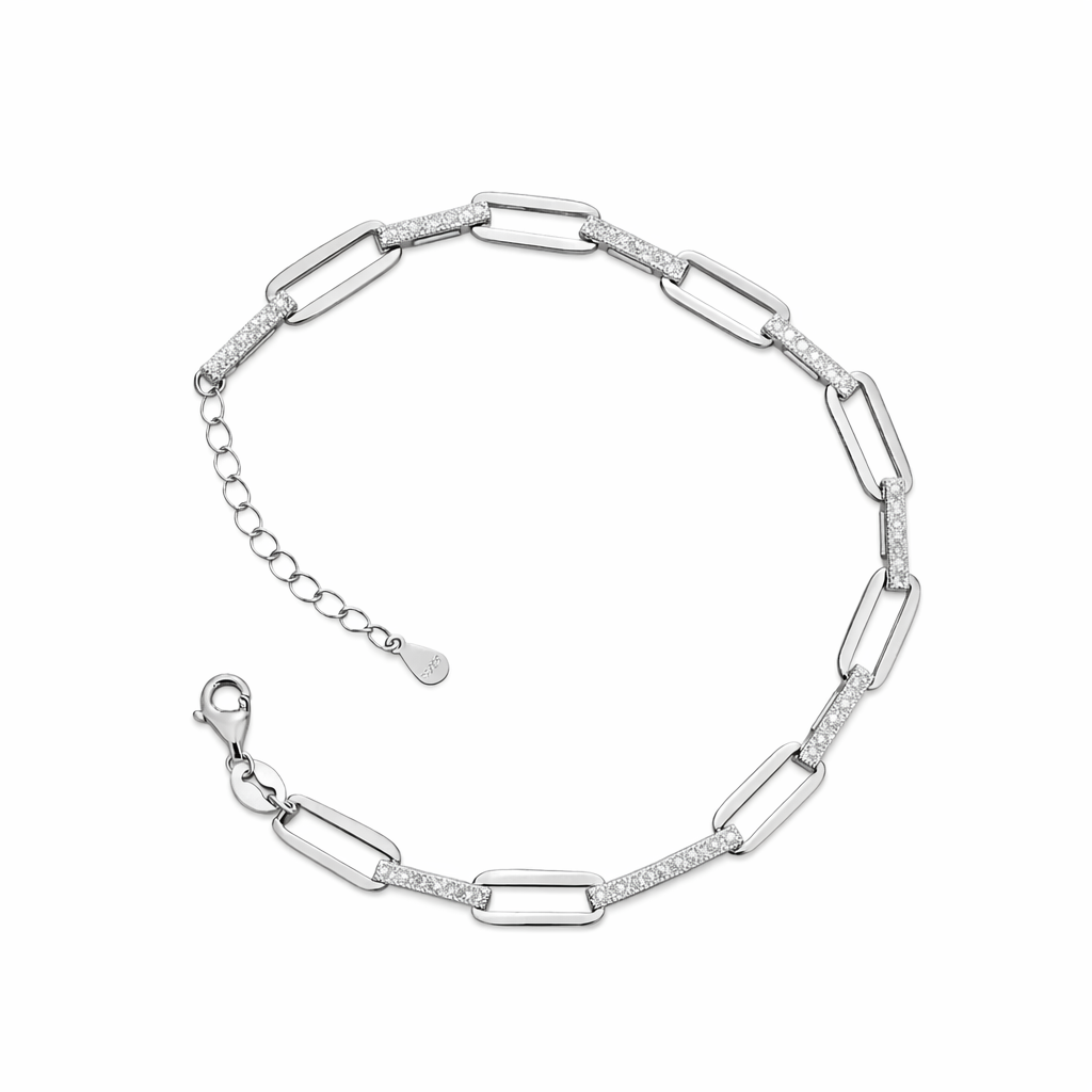اسوارة فضة 925 بتصميم Paperclip مرصعة – أناقة عصرية بلمسة فاخرة
