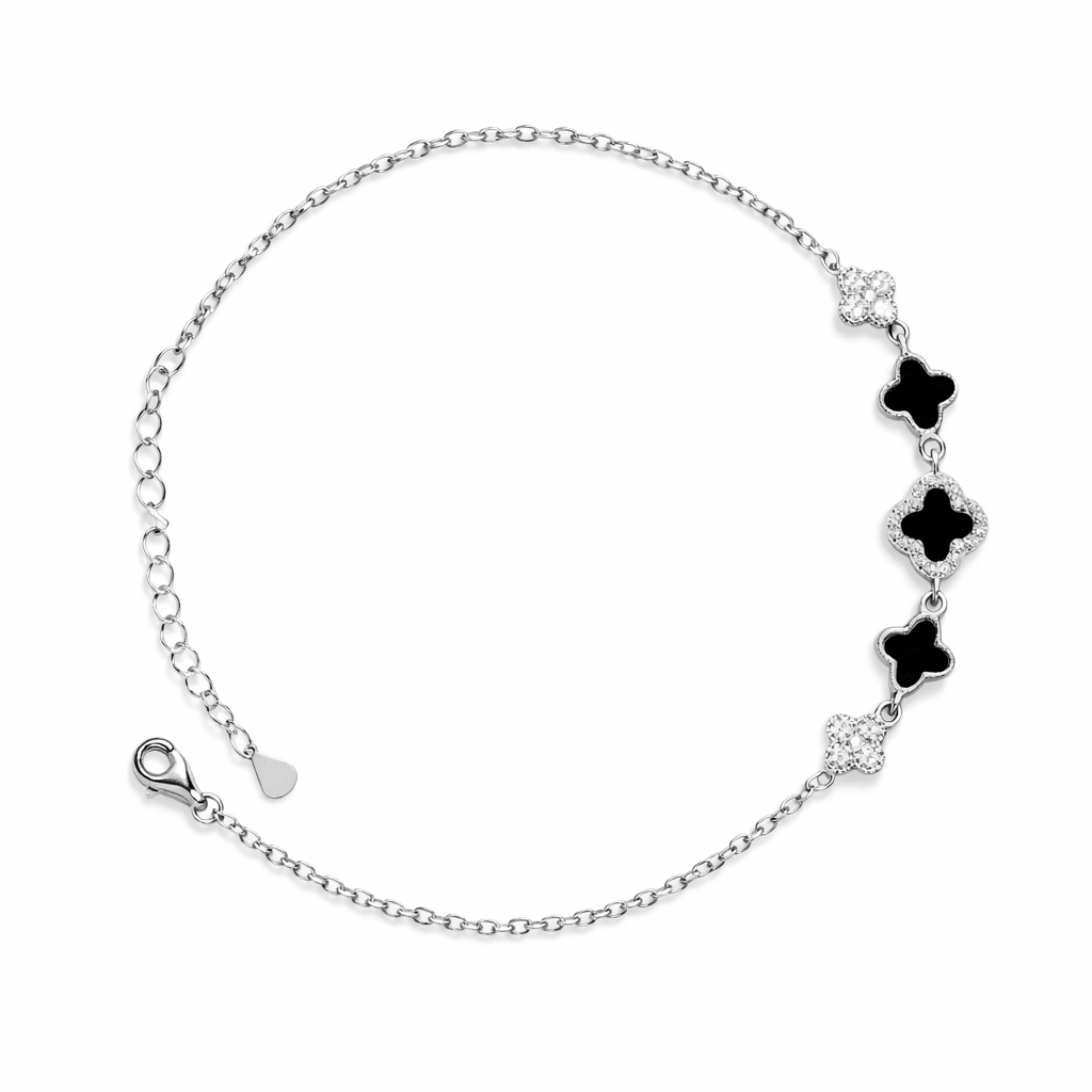اسوارة فضة 925 بتصميم زهرة الأونيكس الأسود – مستوحاة من فان كليف بأناقة راقية