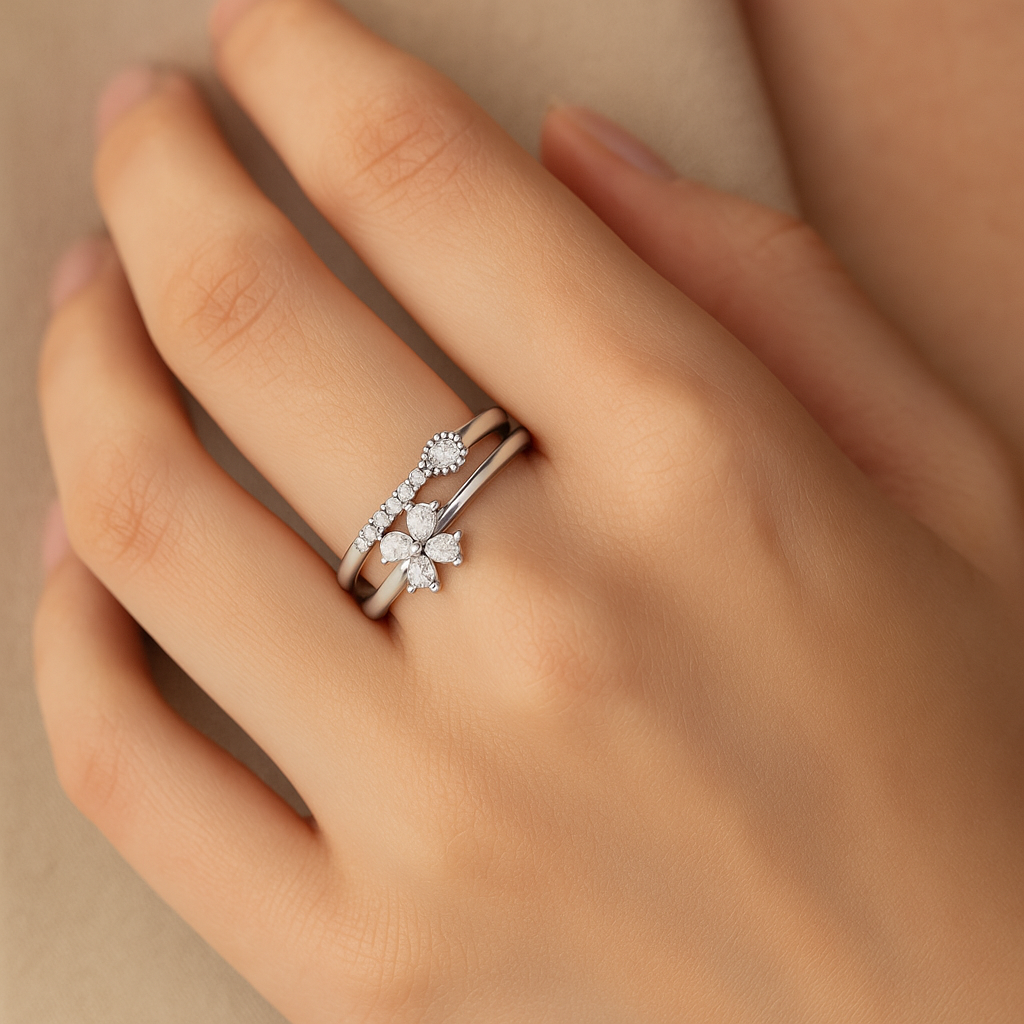 خاتم فضة عيار 925بتصميم الورده مرصع باحجار الزيركون