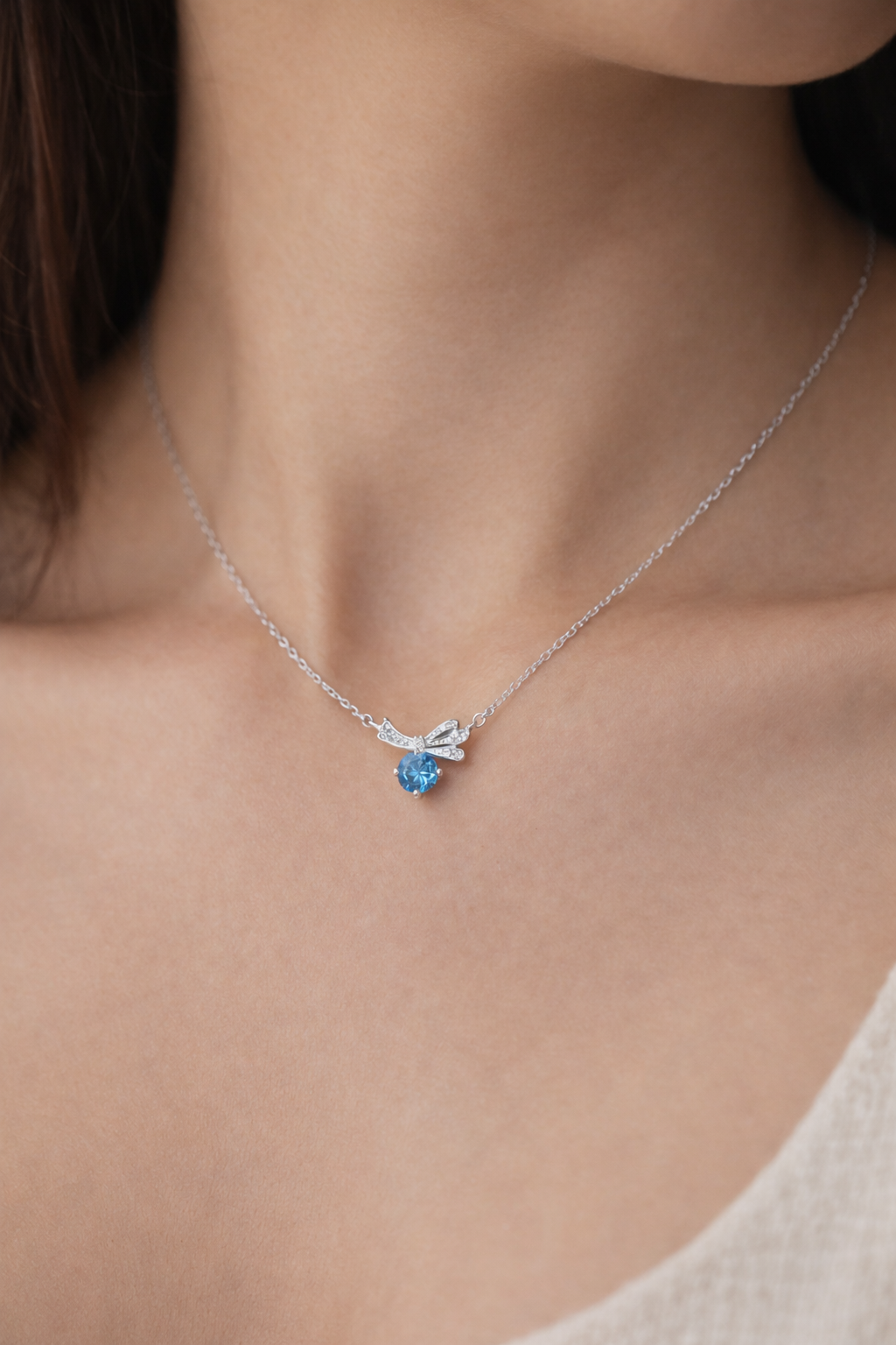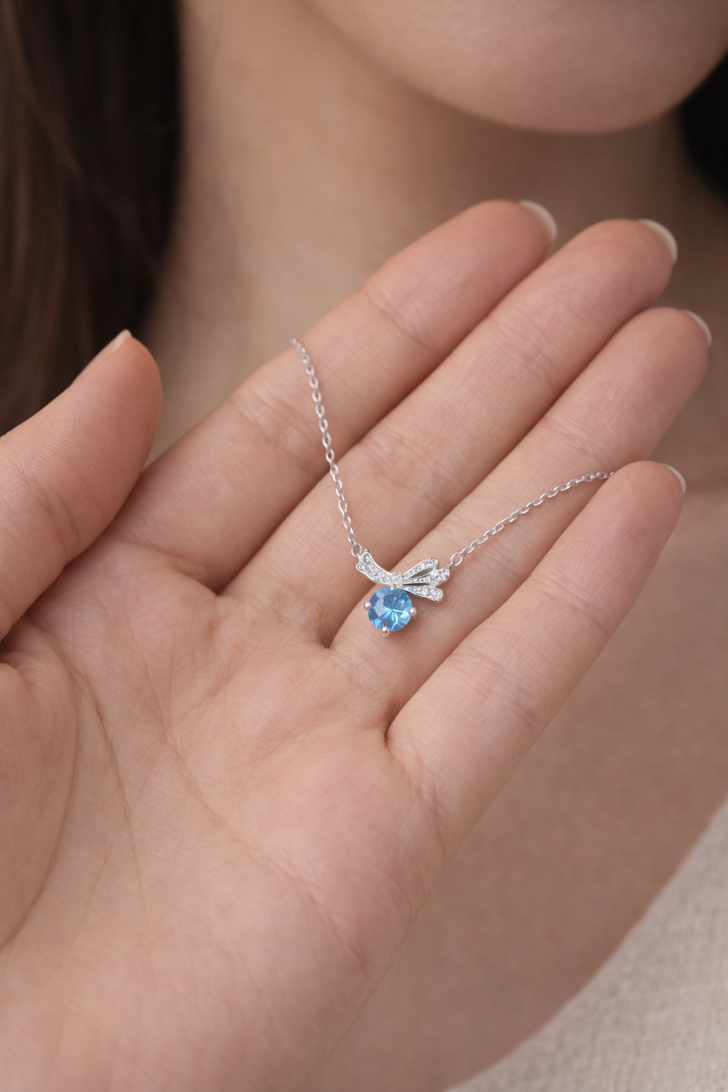حيث يلتقي البريق الفضي مع حجر أزرق لامع يمنحكِ حضوراً هادئاً ومميزاً في كل إطلالة.