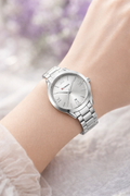 ساعة كورين النسائية الكلاسيكية – تصميم فضي أنيق مع مؤشر التاريخ