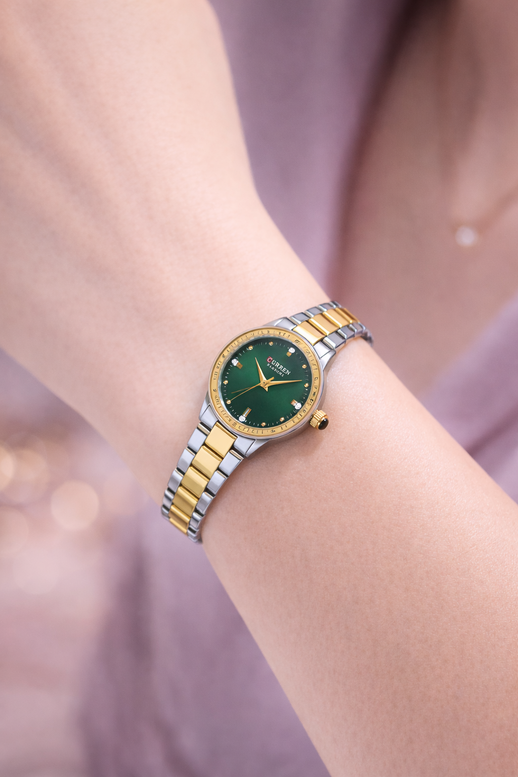 ساعة CURREN Blanche النسائية – أناقة اللون الأخضر بتصميم ثنائي اللون